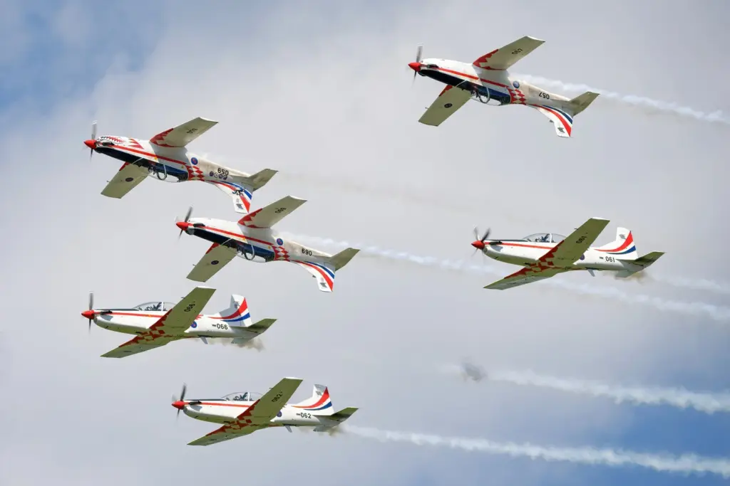 La Force Aérienne croate s’est récemment modernisée avec l’acquisition de Pilatus PC‑7 MkX, destinés à la formation des jeunes pilotes, dans la continuité des PC‑9M actuellement utilisés en démonstration.