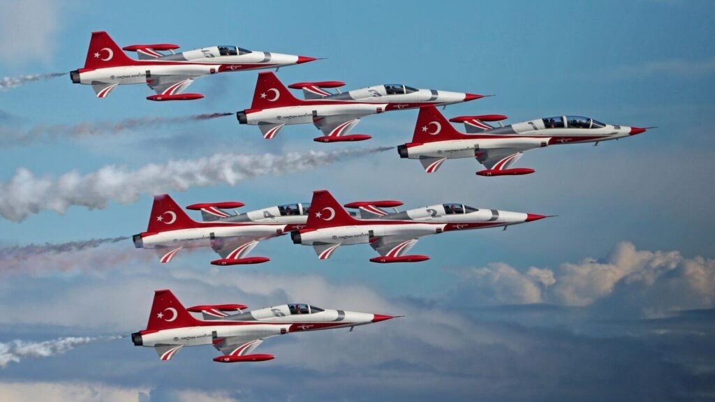 Les Turkish Stars évoluent sur des NF‑5A/B Freedom Fighter, des avions supersoniques issus de l’ancienne flotte néerlandaise et adaptés à l’acrobatie aérienne. Ils opèrent depuis la base aérienne de Konya, siège du 3rd Main Jet Base Command.